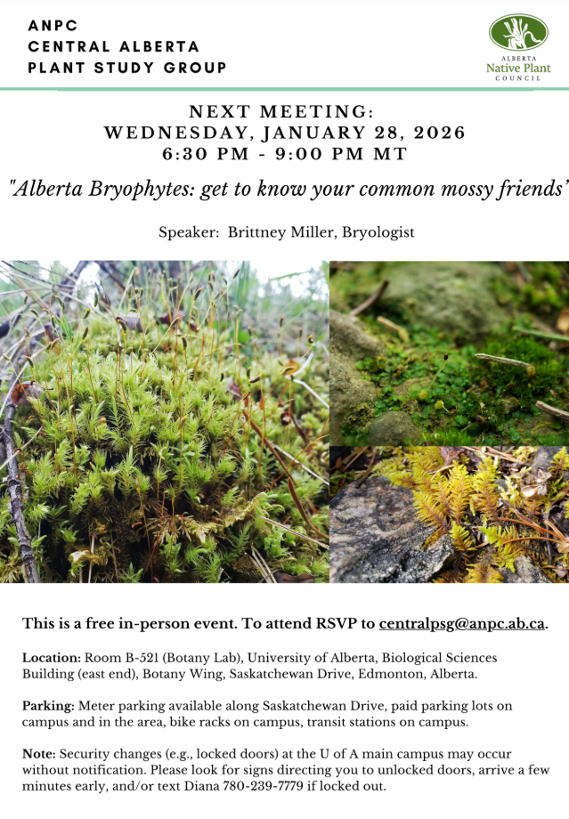 This Central Alberta (Edmonton) Plant Study Group was held on Wednesday, January 28th 6:30 pm at the University of Alberta Herbarium (BioSci B-512).